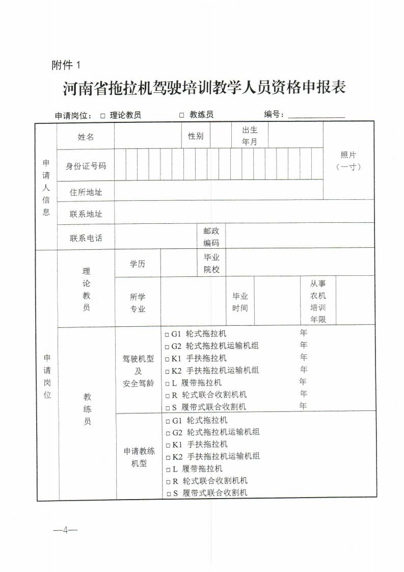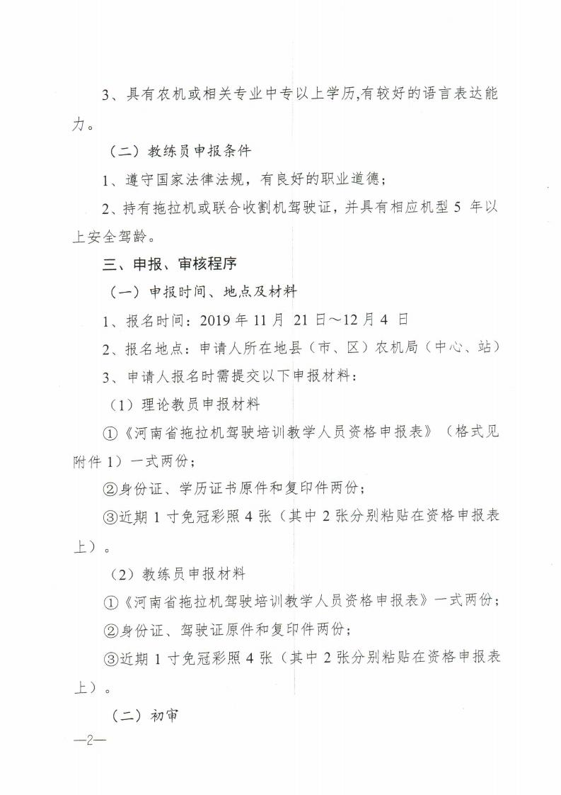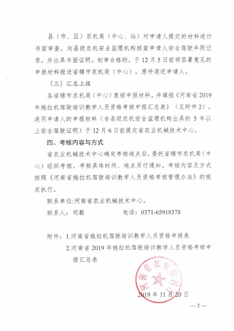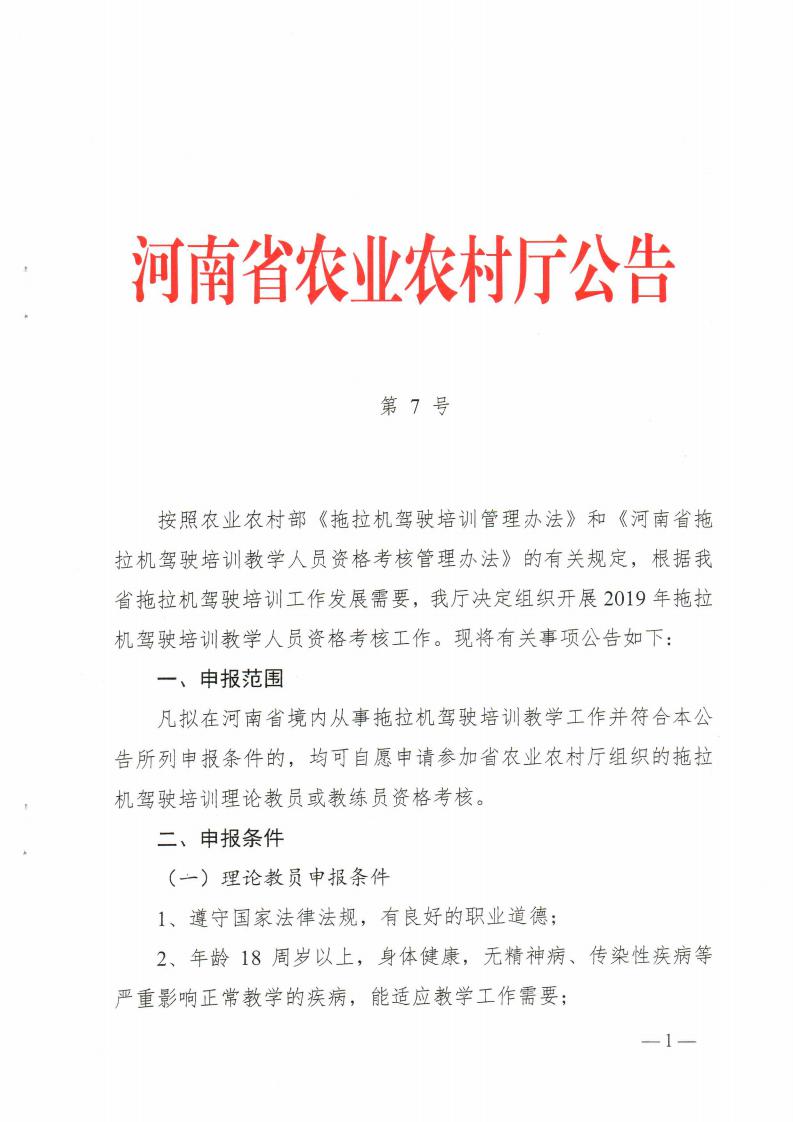 河南省農業農村廳關于開展2019年全省拖拉機駕駛培訓教學人員資格考核工作的公告