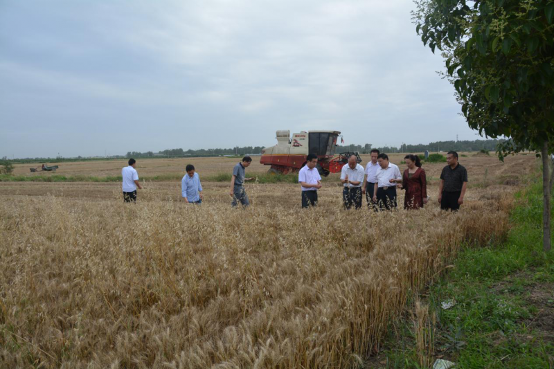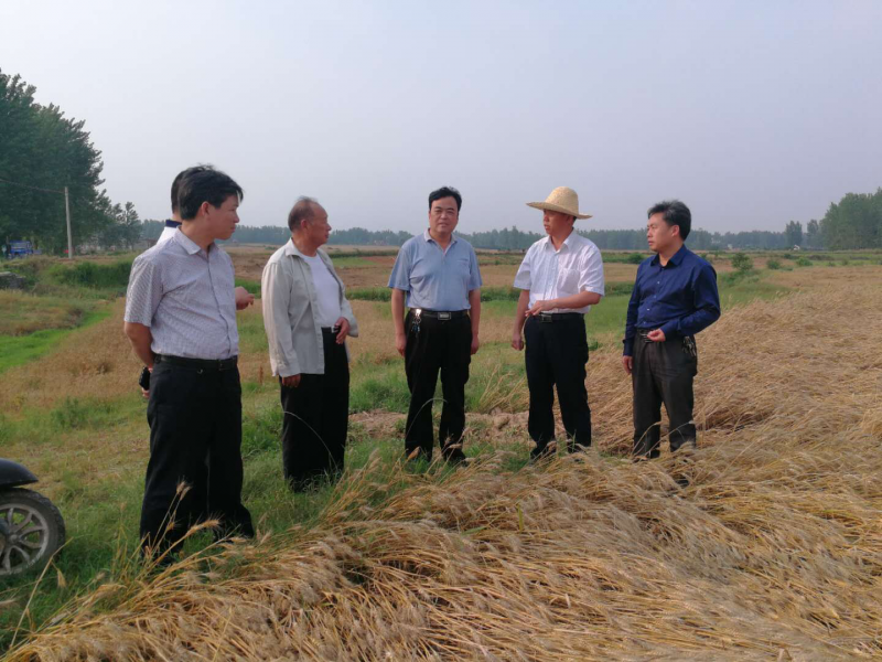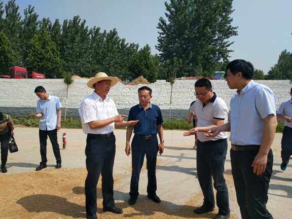 程雙進副巡視員在駐馬店查看倒伏小麥機收情況