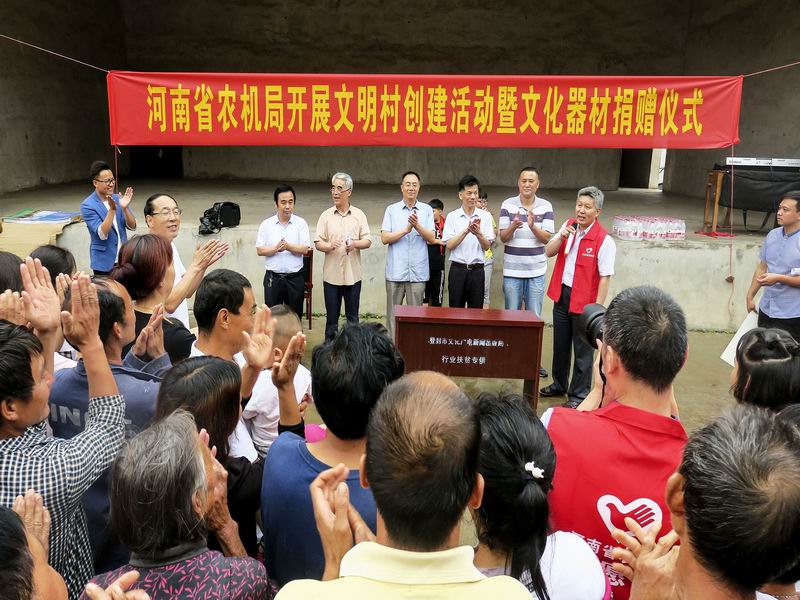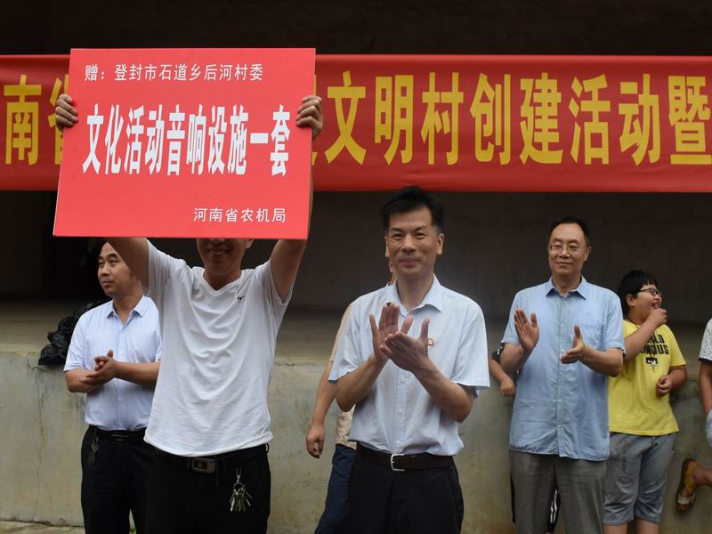 7月10日上午,登封市石道鄉(xiāng)后河村委會(huì)門前早早聚集起了百余名村民。河南省農(nóng)機(jī)局文明村創(chuàng)建活動(dòng)暨文化器材捐贈(zèng)儀式在這舉行。省農(nóng)機(jī)局黨委書(shū)記、局長(zhǎng)凌中南,副局長(zhǎng)王春貴等參加捐贈(zèng)儀式。