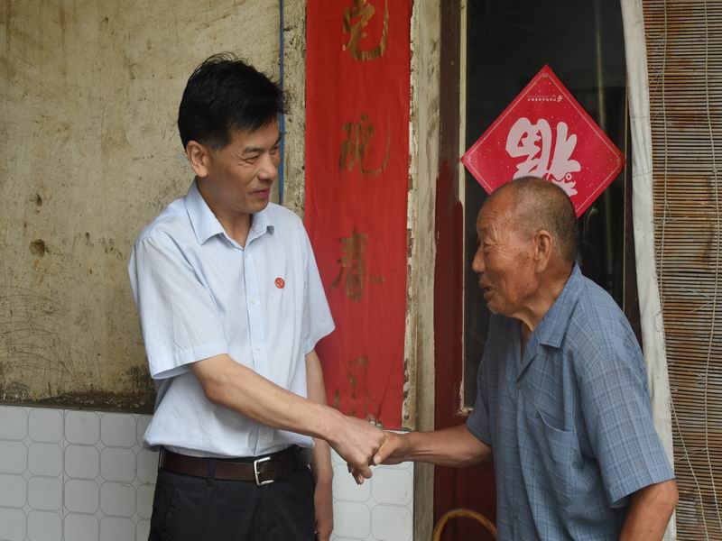 凌中南與貧困戶崔八親切交談,關(guān)切地詢問(wèn)他的家庭、身體、生活情況,并送上慰問(wèn)品。