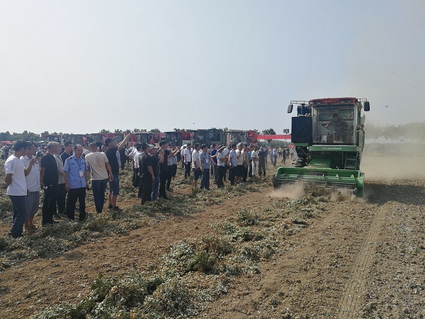 共有來自省內外22家企業生產的39臺不同型號的花生聯合收獲機、花生撿拾收獲機和花生挖掘機進行了現場作業演示,部分機械在降塵控塵功能上做了有益探索并取得初步成效。全國花生生產產業技術體系有關專家,農業農村部主要農作物生產全程機械化專家組有關成員,全國7個兄弟省市農機管理部門領導、農機推廣站技術負責人,河南省農業機械管理局有關領導,農業機械技術推廣站有關人員,各省轄市、直管縣(市)農機推廣站負責人、技術人員,有關農機合作社理事長,駐馬店市政府有關領導,駐馬店市各縣(市、區)農機局、推廣站負責人,正陽縣委、縣政府有關領導,各鄉鎮主管農業的鄉鎮長和周邊群眾300多人參加現場觀摩。