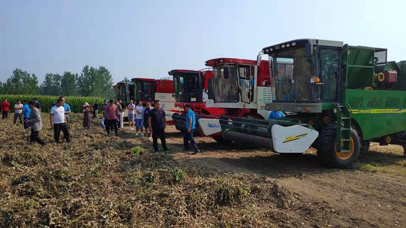 本次會議將花生機械化收獲作業(yè)揚塵治理作為主題,組織具有降塵功能的8臺花生撿拾摘果機開展了現(xiàn)場作業(yè)演示。我市豪豐公司研制的智能自走式花生聯(lián)合收獲機,在作業(yè)中展示了良好的降塵效果。