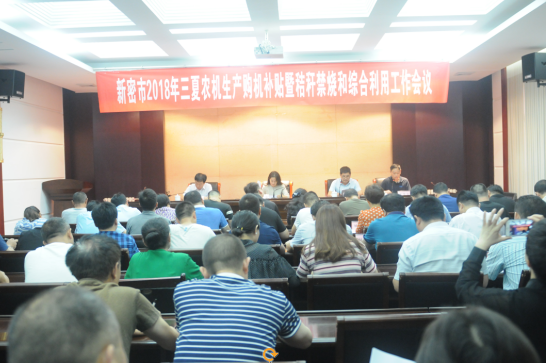 5月18日上午,新密市召開了2018年三夏農機生產、購機補貼暨秸稈禁燒和綜合利用工作會議。副市長楊洋、市政府黨組成員魏建朝、市政府辦副主任劉軍、市禁燒辦主任農機局局長朱青見、各鄉(鎮、辦事處)及相關委局分管副職參加了會議,安排部署三夏農機生產、購機補貼暨秸稈禁燒和綜合利用工作。