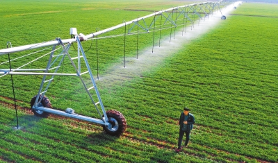 踏著春天的腳步,西華縣的黃泛區(qū)農場高標準農田,綠油油的麥苗一望無際,工作人員正在操作平移式節(jié)水灌溉設備為冬小麥春澆春灌。