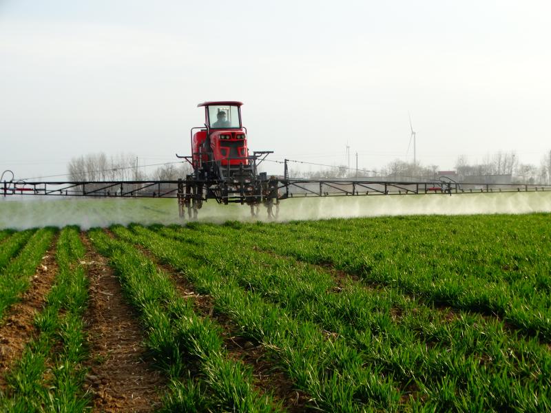 2月10日,沈丘縣周營(yíng)鎮(zhèn)一處萬(wàn)畝小麥高產(chǎn)示范基地,農(nóng)機(jī)手駕駛植保機(jī)械噴施藥液,促小麥返青生長(zhǎng)。謝辛凌 攝