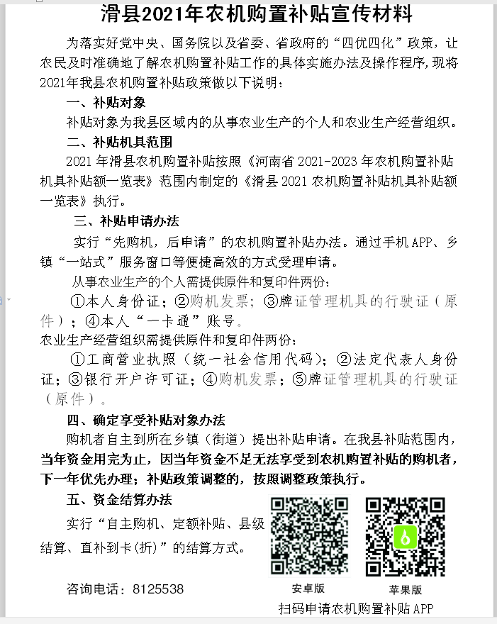 當前位置:河南省農(nóng)機農(nóng)墾發(fā)展中心 專題 河南省農(nóng)機購置與應用補貼信息公開專欄 信息公開 安陽市 滑縣