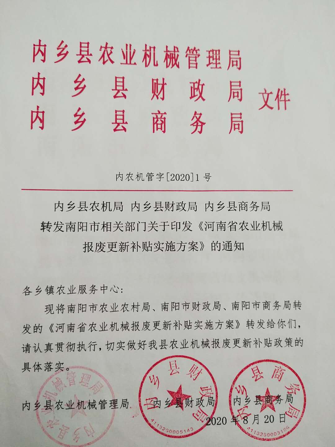 當(dāng)前位置:河南省農(nóng)機(jī)農(nóng)墾發(fā)展中心 專題 河南省農(nóng)機(jī)購(gòu)置與應(yīng)用補(bǔ)貼信息公開(kāi)專欄 信息公開(kāi) 南陽(yáng)市 內(nèi)鄉(xiāng)縣