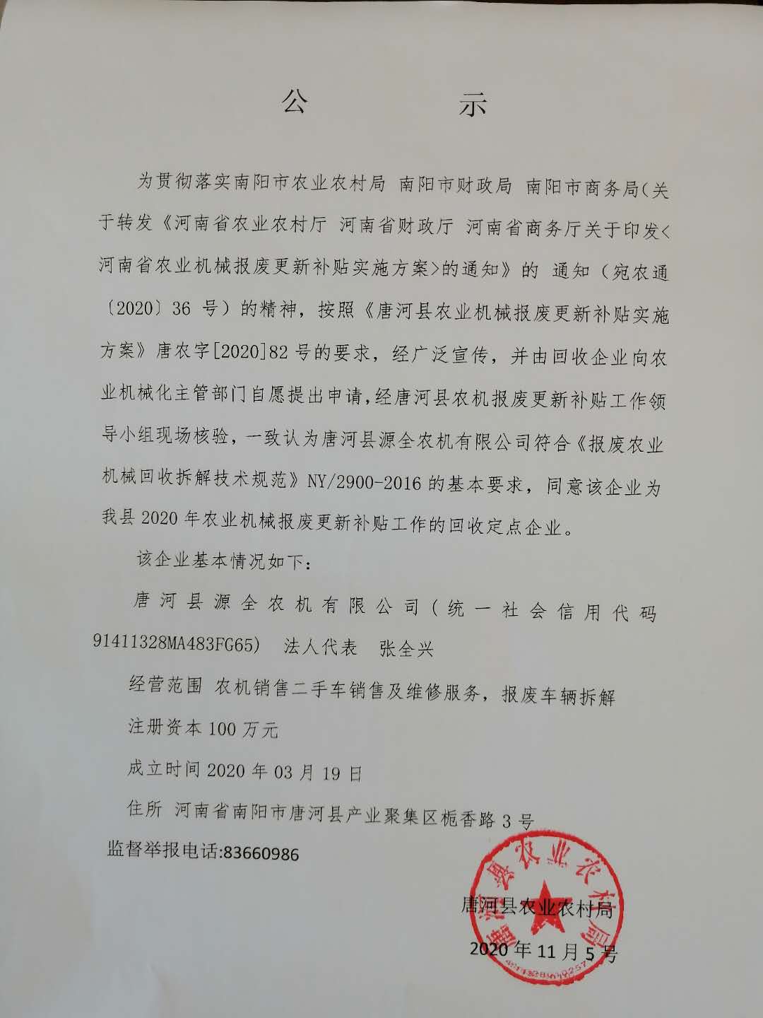 當(dāng)前位置:河南省農(nóng)機(jī)農(nóng)墾發(fā)展中心 專題 河南省農(nóng)機(jī)購置與應(yīng)用補(bǔ)貼信息公開專欄 信息公開 南陽市 唐河縣