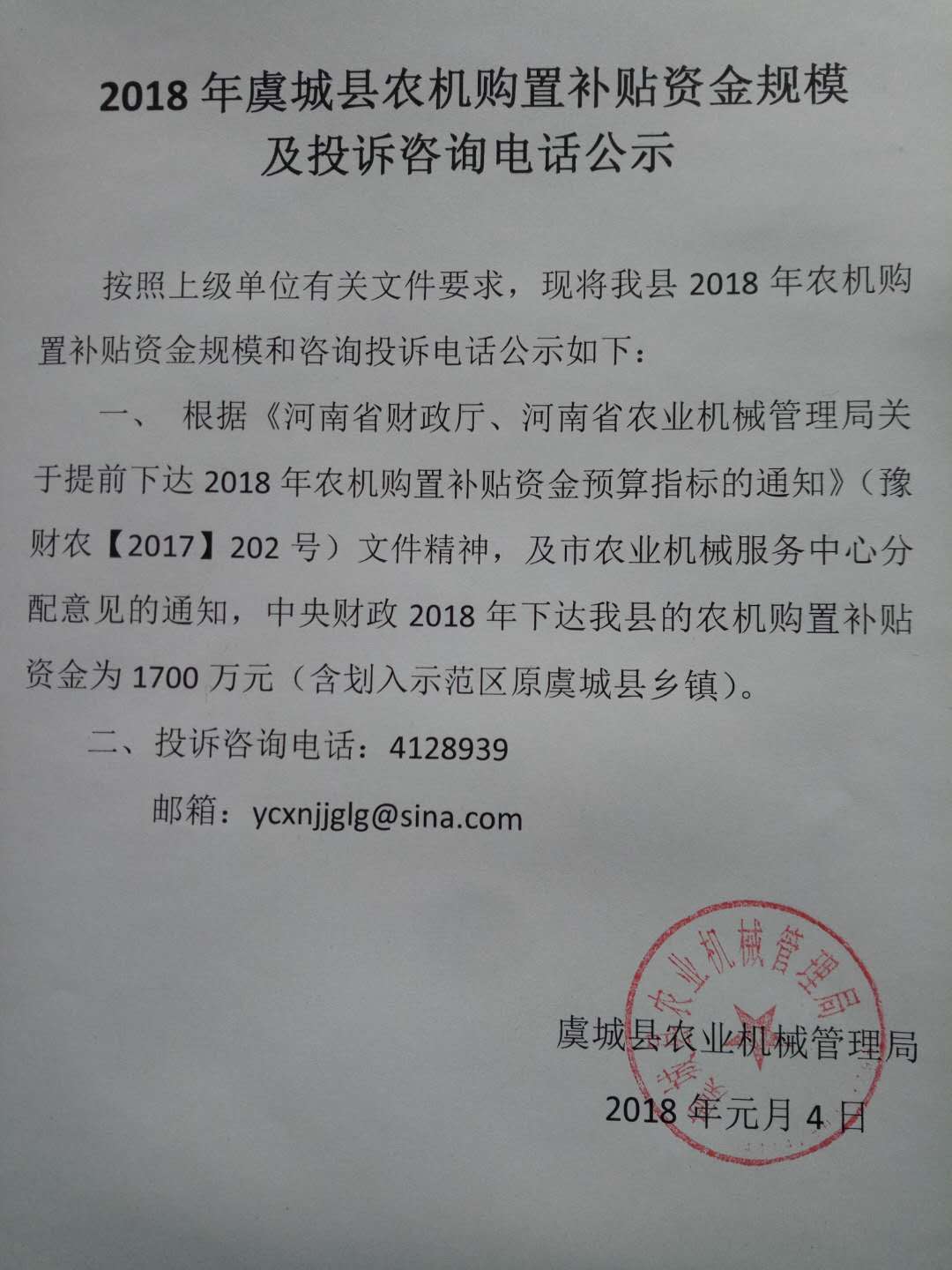 當前位置:河南省農機農墾發展中心 專題 河南省農機購置與應用補貼信息公開專欄 信息公開 商丘市 虞城縣