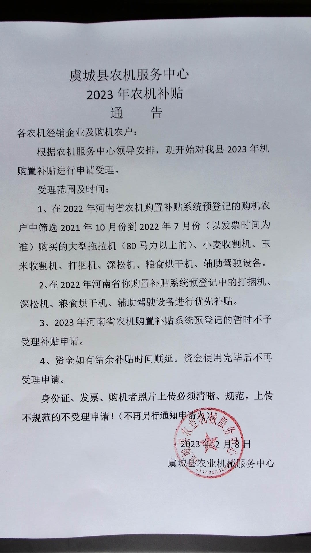 當前位置:河南省農機農墾發展中心 專題 河南省農機購置與應用補貼信息公開專欄 信息公開 商丘市 虞城縣農機購置補貼信息公開專欄