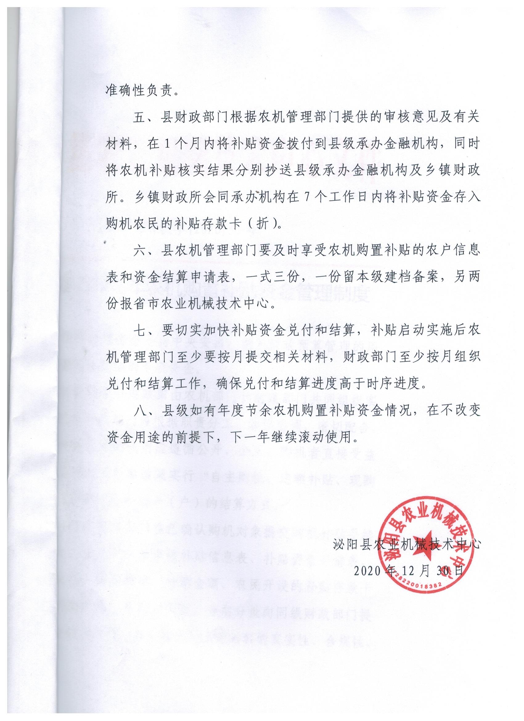 泌陽縣2020年農機購置補貼資金管理制度