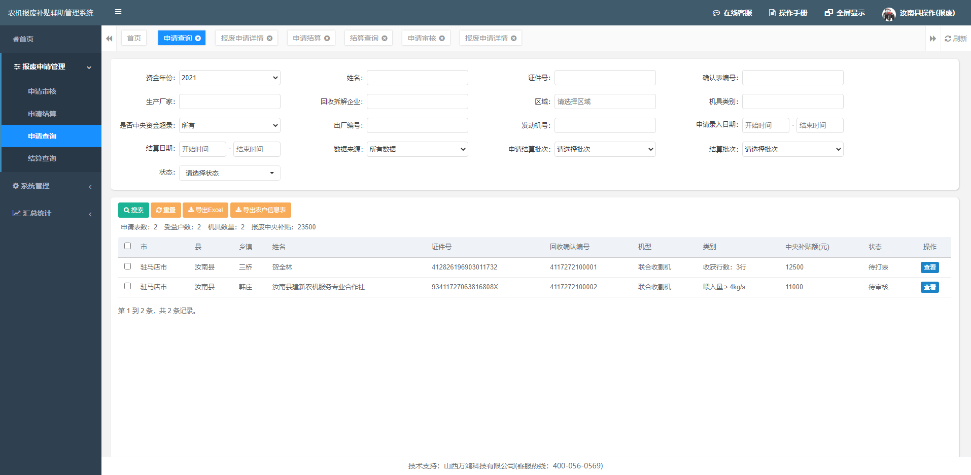 汝南縣農機報廢補貼系統軟件的界面截圖.png