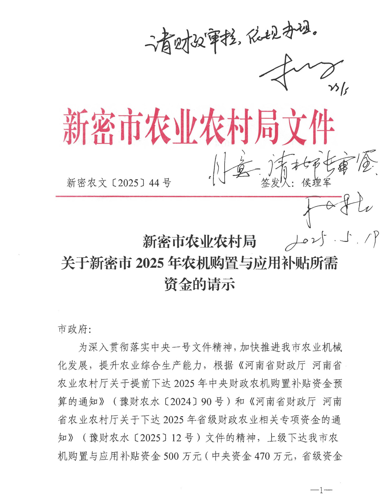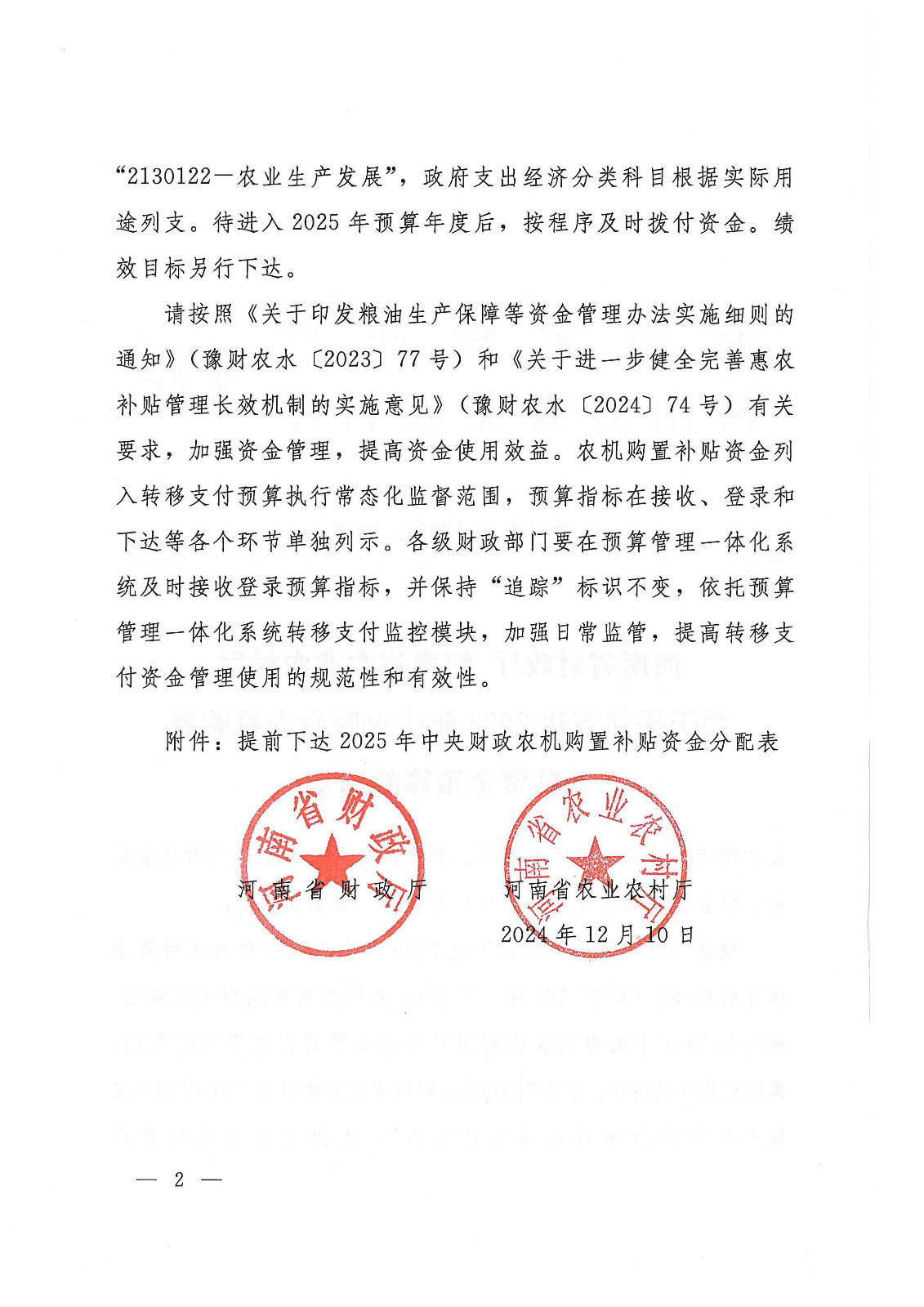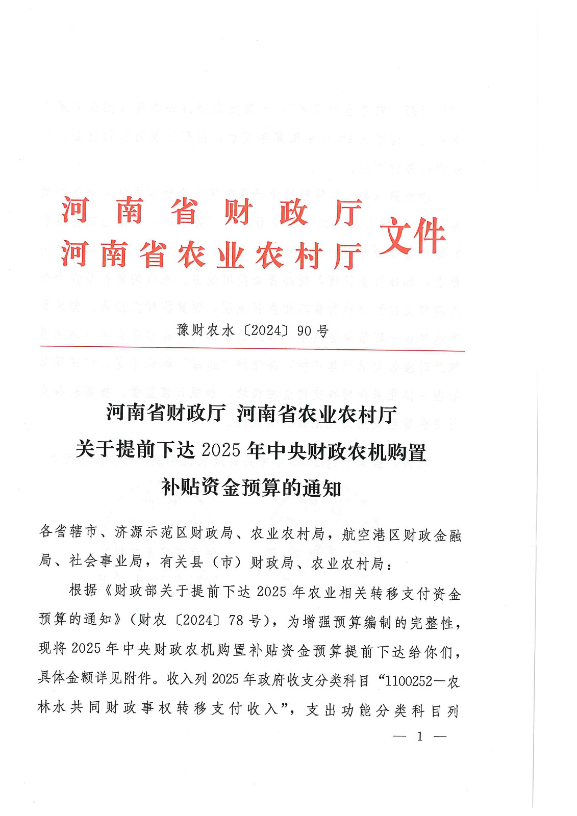 關于提前下達《2025年中央財政農機購置補貼資金預算》的通知